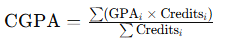 The calculation happens in two stages: first, the SGPA (Semester/Term GPA), and second, the overall CGPA (Cumulative GPA).