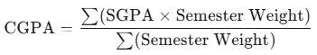 The most critical factor in your CGPA calculation is the Regulation under which you were admitted, as this dictates the semester weightage.