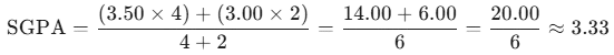 Example: If you score a 3.50 (B+) in a 4-credit subject and a 3.00 (B) in a 2-credit subject: